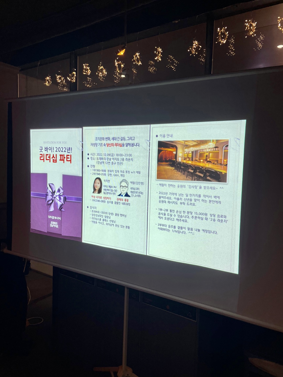 | 2022년 송년 모임 '리더십 파티' (12/09, 강남역) (0) | 2022.11.25 |
