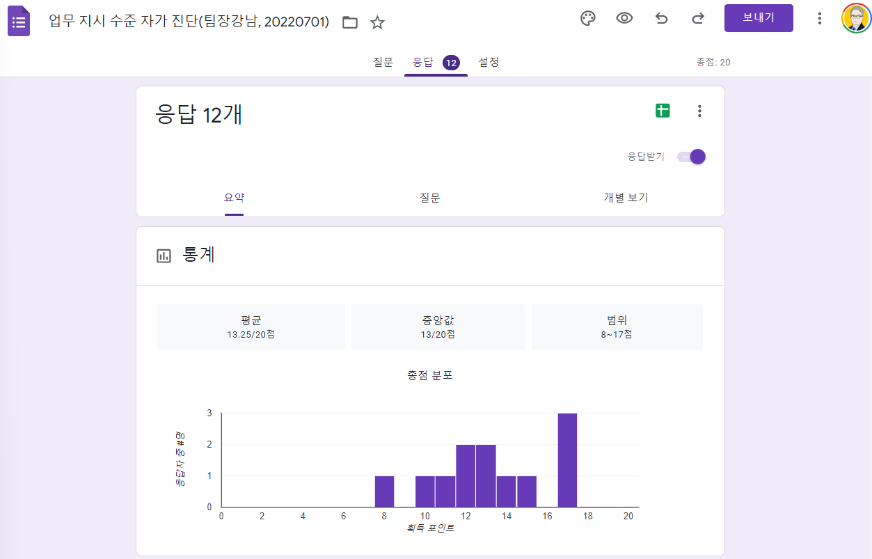 리더십스쿨 시즌4 클래스에서 '업무 지시'와 관련된 자가 진단 세션을 가졌습니다. 20 문항을 통해 현재 우리 팀의 수준을 살펴봤고요. 부가적으로 여러 고민과 응원이 오고 갔습니다.