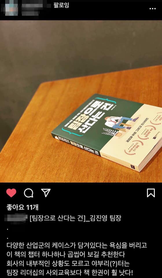 “회사의 내부적 상황도 모르고 야부리 터는 리더십 사외교육 보다 책 한권이 낫다!”