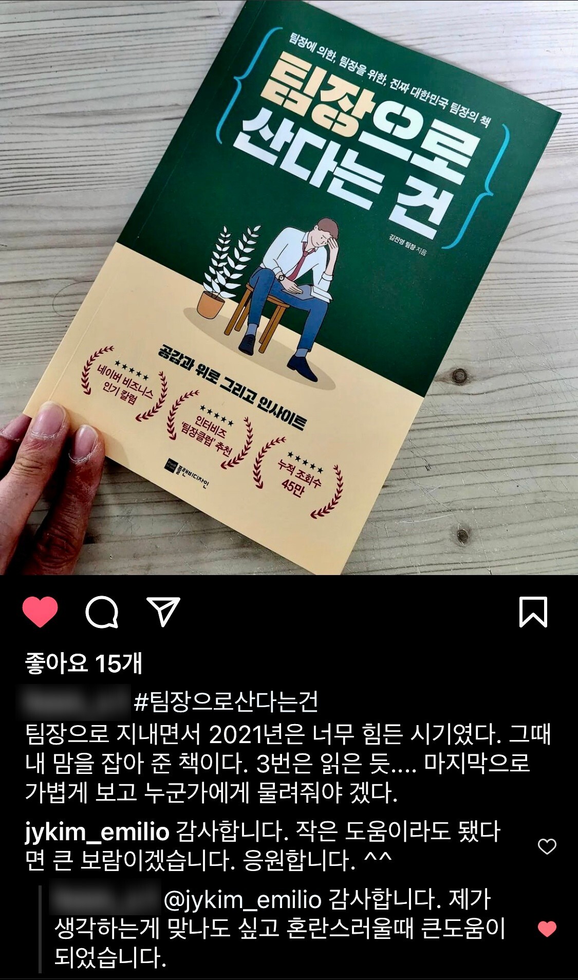 <팀장으로 산다는 건>은 곧 6쇄에 돌입할 예정입니다. 이게 다 팀장님들께서 피드백을 많이 주시고, 관심과 구매로 응원해주신 덕분입니다. 이 은혜를 어떻게 갚아야 할지 고민해보겠습니다. ^^