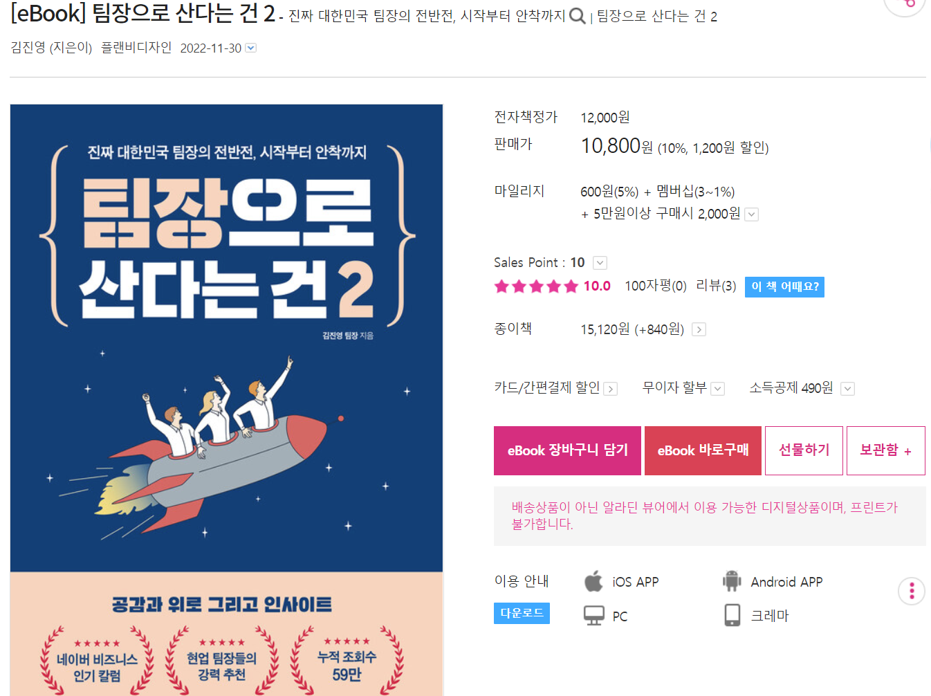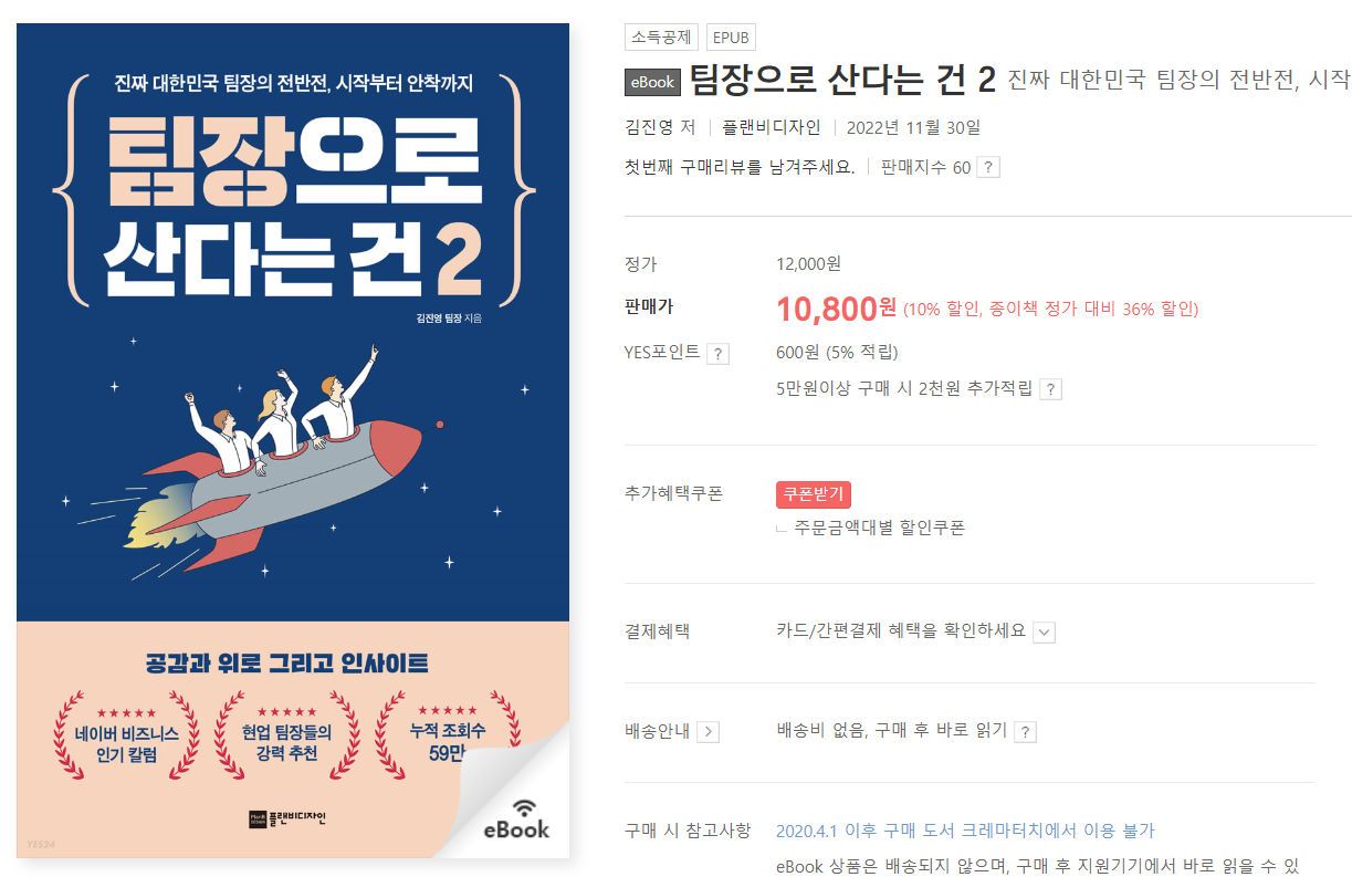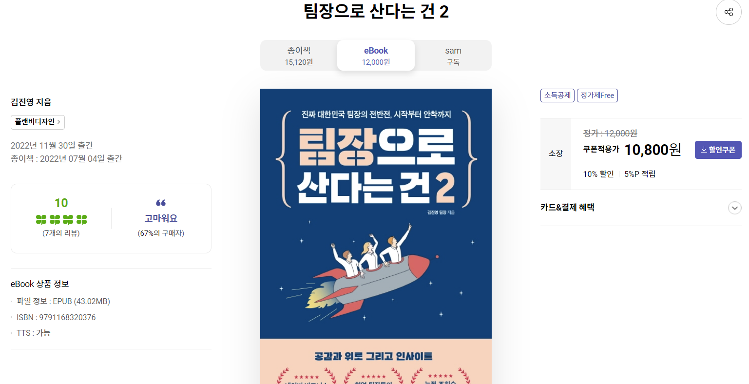 <팀장으로 산다는 건 2> e북이 출간되어 대부분 온라인 서점과 독서 서비스 사이트에 게시됐습니다!!! ^^/